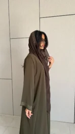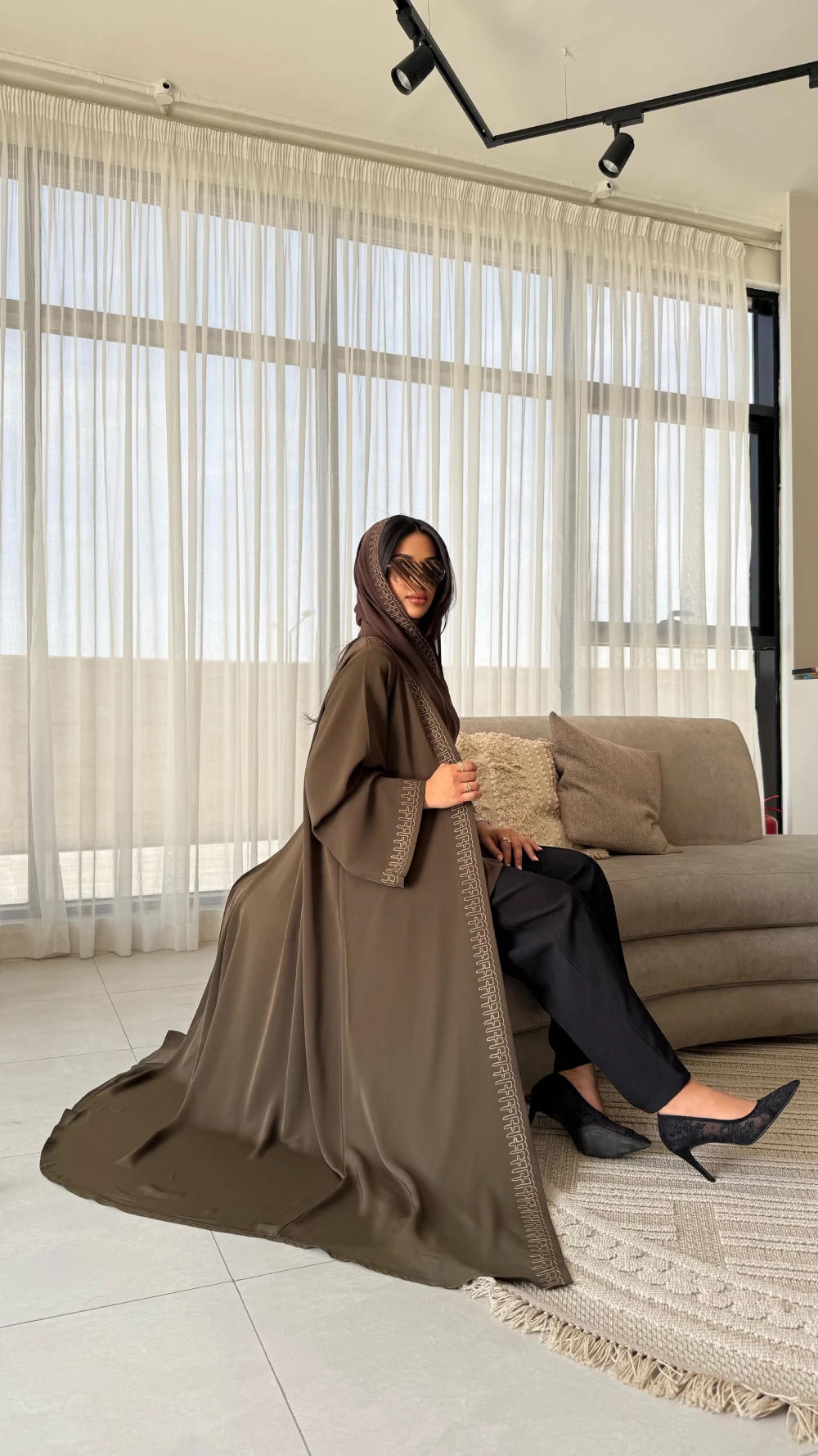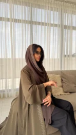 التفاصيل : عبايه قماش ندى كوري قماش صيفي خفيف ، قصه A شغل تطريز . شيله باطراف تطريز