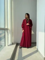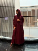 التفاصيل : قماش باربي كريب عنابي ، قصه بحريني . مع شيله ساده