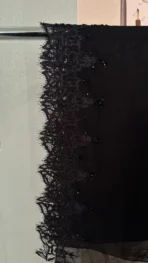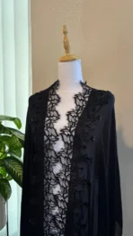 النوع شيفون مع دانتيل وشغل خرز (مطابق لعباية 86) المقاس الكبير وارين وربع العرض 28