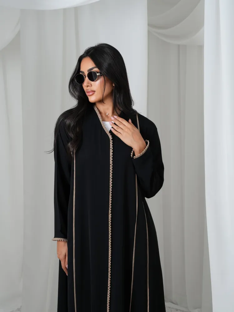 Aالتفاصيل: عباية بقماش ندى شغل بايبنق بيج قصة