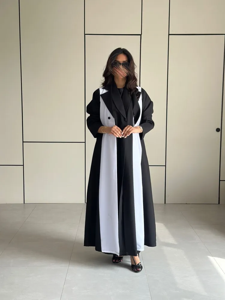 التفاصيل : عبايه ودريس القماش كريب قصه بليزر . شيله ساده